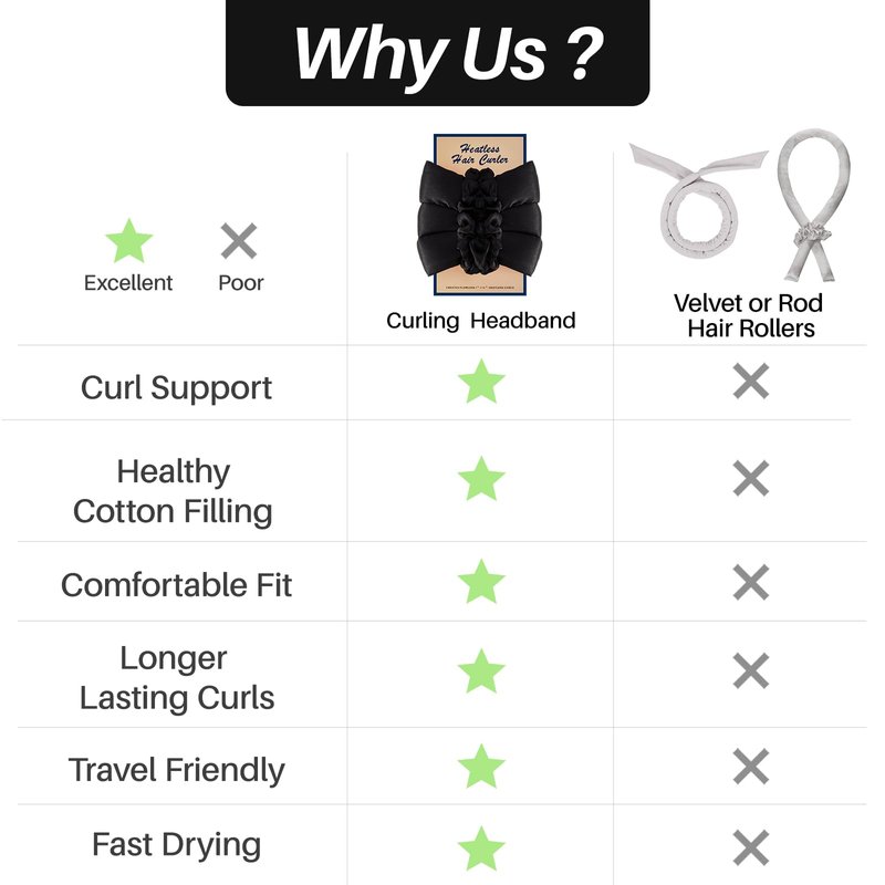 - 【ACHIEVE GLAMOROUS CURLS】Experience our heatless hair curler with cotton inside and silk outside for healthy curls. Get glamorous classic looks without heat damage using our heatless curling headband. Achieve overnight heatless curls effortlessly.