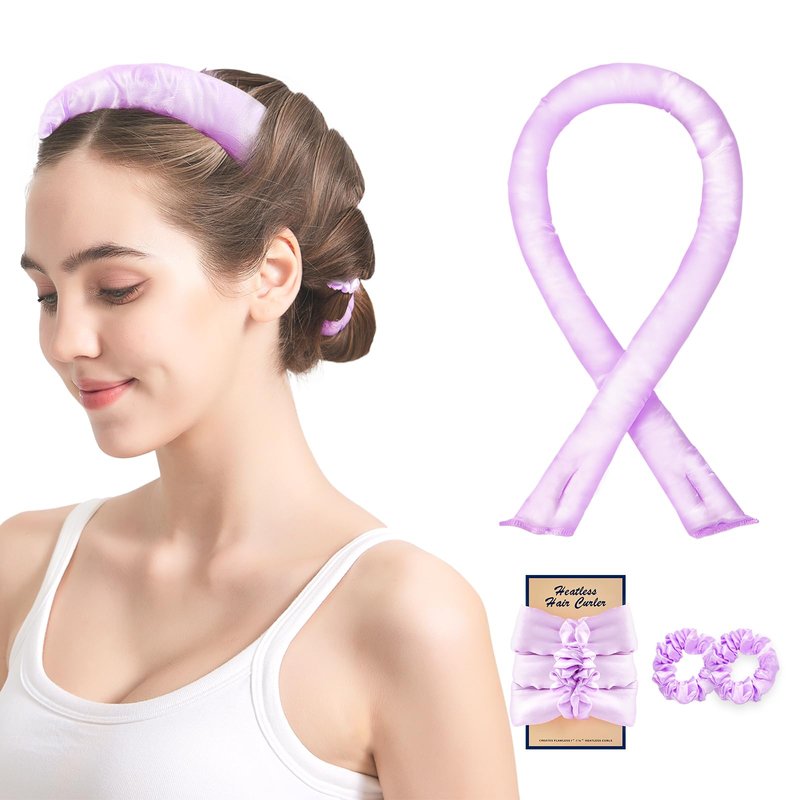 Olaemuo Satin Heatless Hair Curler Set - Overnight Heatless Curls to Sleep in - Heatless Curlers - Heatless Curls Headband - No Heat Soft Hair Curlers to Sleep in - Heatless Curling Rod - Purple