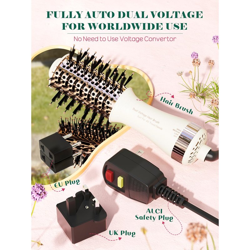 - โ ใ๐๐ฎ๐๐ฅ ๐๐จ๐ฅ๐ญ๐๐ ๐ ๐๐จ๐ซ ๐๐ฅ๐จ๐๐๐ฅ ๐๐จ๐ง๐ฏ๐๐ง๐ข๐๐ง๐๐ใOur hair dryer brush features ๐๐ฎ๐ญ๐จ๐ฆ๐๐ญ๐ข๐ ๐๐จ๐ฅ๐ญ๐๐ ๐ ๐๐จ๐ง๐ฏ๐๐ซ๐ฌ๐ข๐จ๐ง, no need to use voltage convertor or manual fix it to certain voltage.Compatible with both ๐๐๐-๐๐๐๐ ๐๐ง๐ ๐๐๐-๐๐๐๐, this bivolt styling tool comes with EU and UK plugs, ensuring you can enjoy effortless styling anywhere in the world!