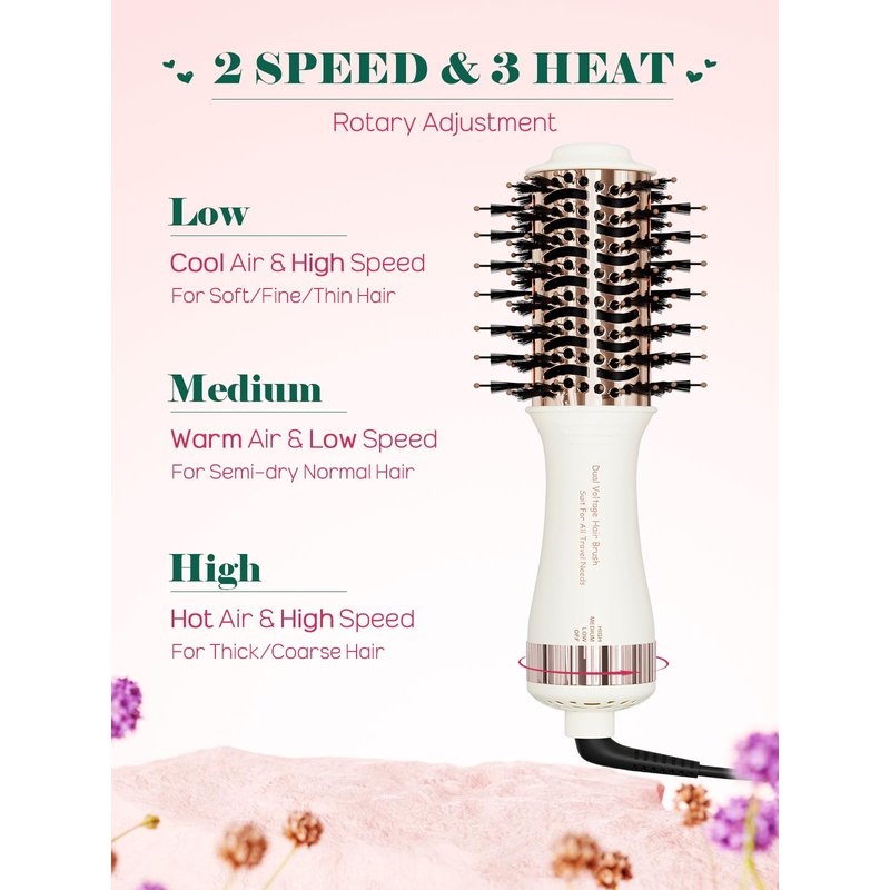 - โ ใ๐ ๐๐๐ฃ๐ฎ๐ฌ๐ญ๐๐๐ฅ๐ ๐๐๐๐ญ & ๐ ๐๐ฉ๐๐๐ ๐๐๐ญ๐ญ๐ข๐ง๐ ๐ฌใCustomize your styling with ๐ซ๐จ๐ญ๐๐ซ๐ฒ ๐๐๐ฃ๐ฎ๐ฌ๐ญ๐๐๐ฅ๐ ๐ก๐๐๐ญ ๐๐ง๐ ๐ฌ๐ฉ๐๐๐ settings,preventing accidental switching between settings during styling. Use LOW for soft/fine/thin hair; MEDIUM for semi-dry/normal hair; and HIGH for thick/coarse hair that needs quick drying.