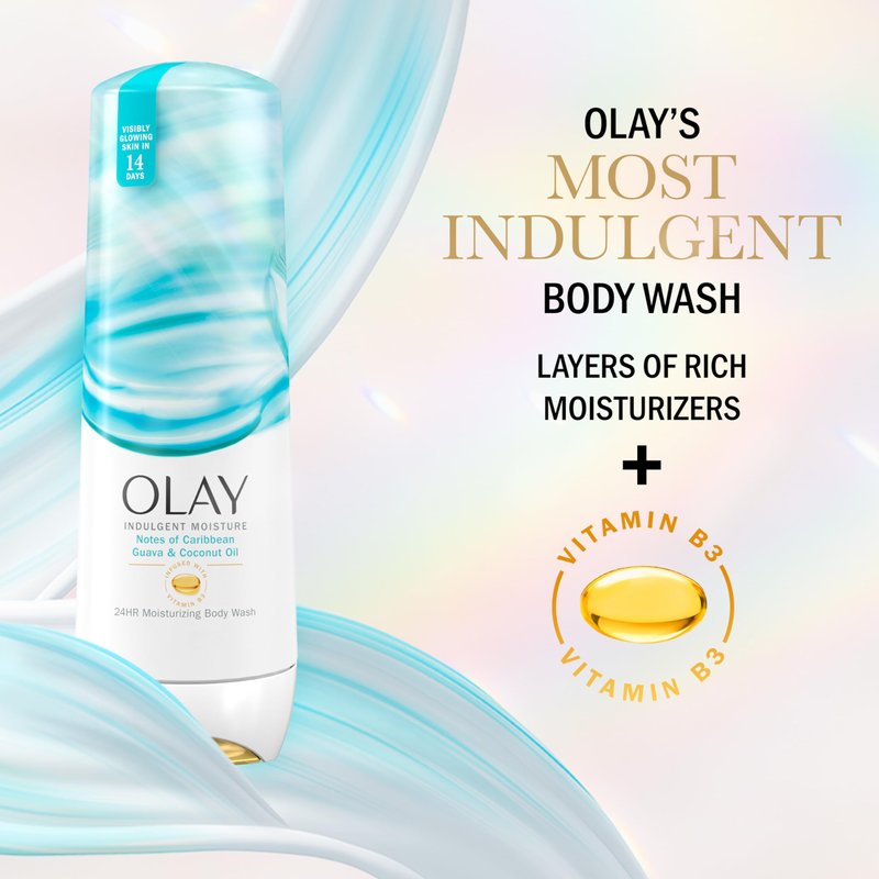 - Olay Body Wash Indulgent Moisture for Women, Infused with Vitamin B3, Notes of Caribbean Guava and Coconut Scent, 20 fl oz