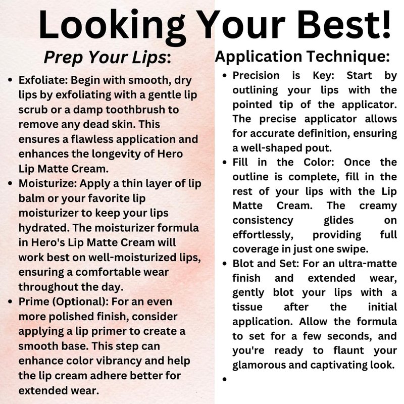 Indulge in the allure of Hero Long-Lasting Waterproof Lip Matte Cream, a must-have in your beauty arsenal for enduring glamour. Our moisturizer-infused formula ensures not only captivating color but also a nourishing touch that lasts all day. Embrace the enchanting charm of Color #004: Bean Paste & Taro Puree, a hue that exudes sophistication. Unleash the power of long-lasting wear, waterproof resilience, and a captivating matte finish for a look that stays flawless from dawn to dusk. Elevate your lip game with Hero, where glamour meets endurance in every alluring swipe.