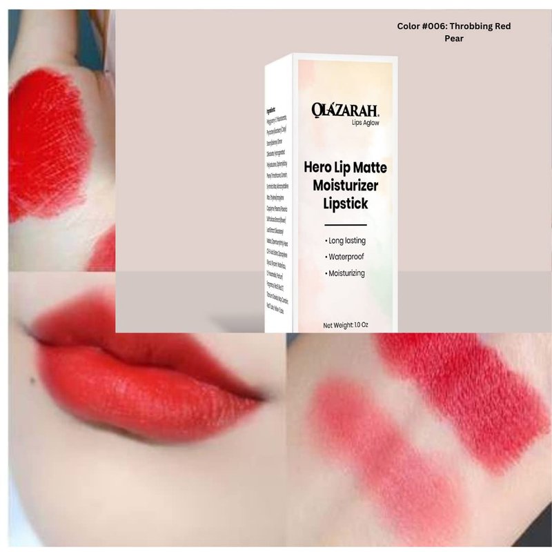 OLAZARAH | Lip Matte Cream Lip Color #006 - Intense Throbbing Red Pear | Stay Gorgeous with Water-Resistant, Long-Lasting Moisturizing Formula for All-Day, 1 oz. (packaging may vary)