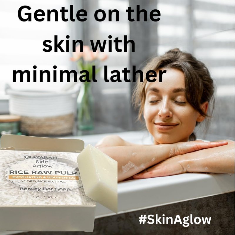 OLAZARAH Organic Rice Raw Pulp Bar Soap – Gentle Exfoliation & Deep Moisturizing for All Skin Types, (4 pkts), 4 oz