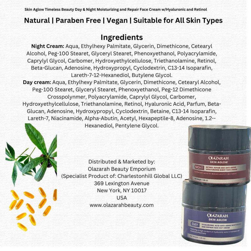 OLAZARAH Skin Aglow Anti-Aging Moisturizing and Repair Face Day Cream w/Hyaluronic Acid, 1.05 oz
