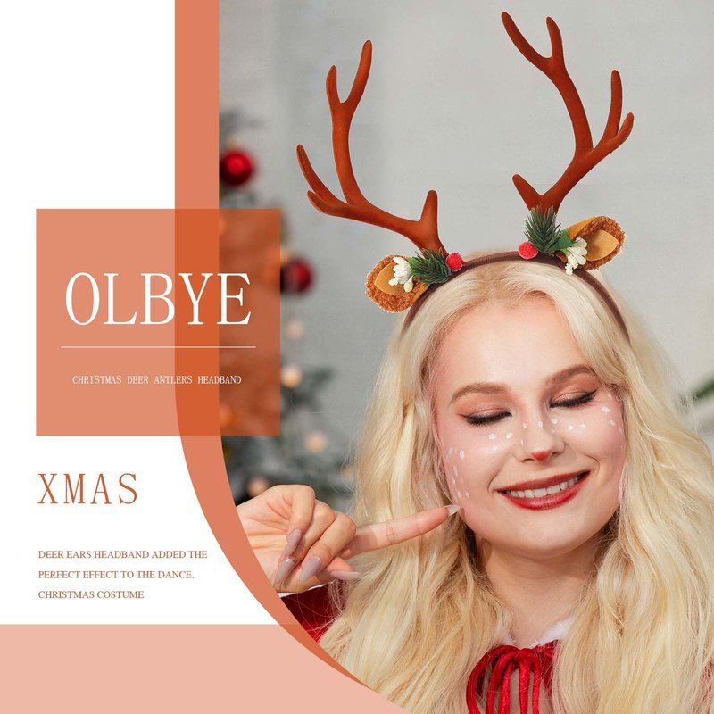 Olbye devote to creating deer antlers headband, Christmas headband,deer ear headband,reindeer antlers hairband,deer antlers headdress,Xmas headpiece,holiday hair hoop,festival headwear,Halloween costume accessories.