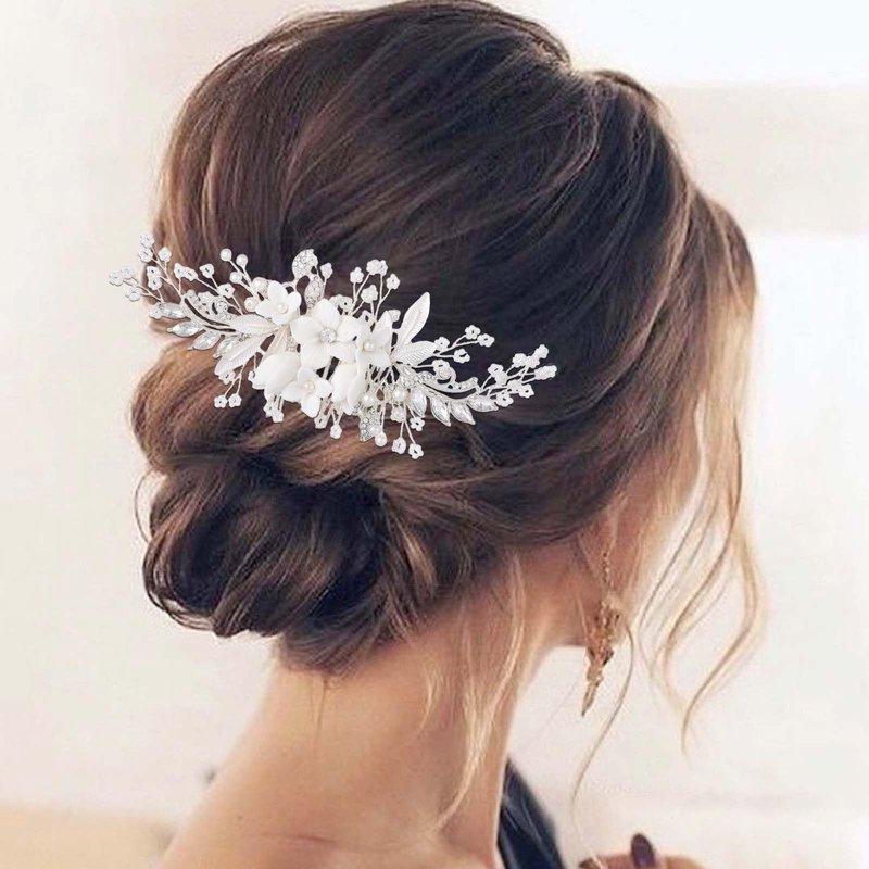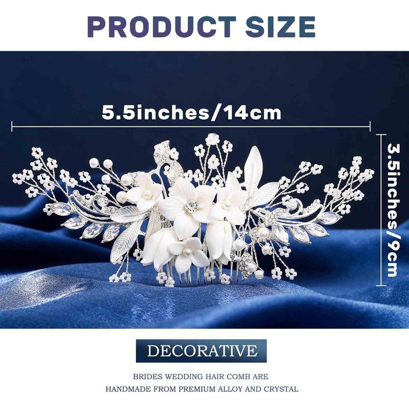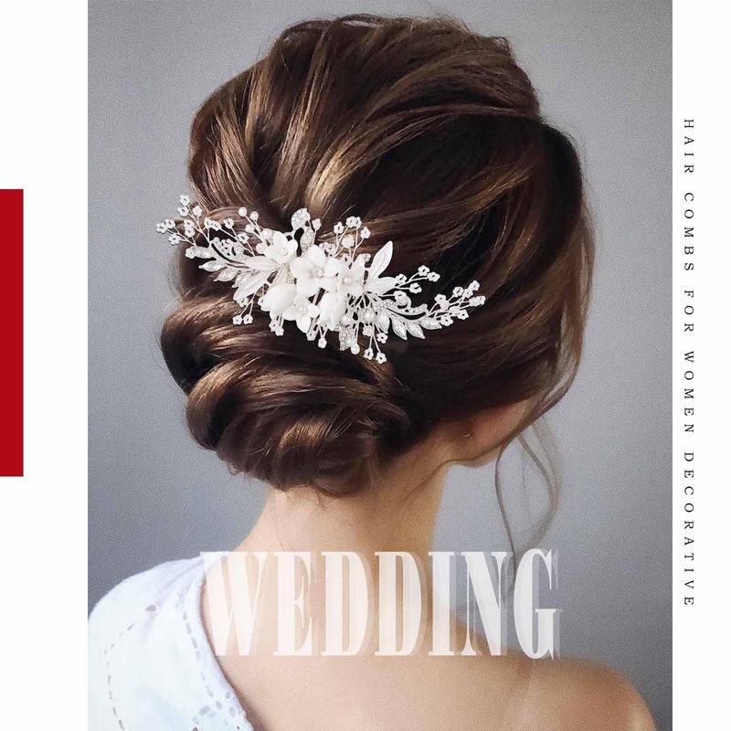 - Brides wedding hair accessories are handmade from high quality alloy and rhinestones, leaves, pearls are attached to the silver wire to make the shape of the decorative hair combs look more unique and elegant.