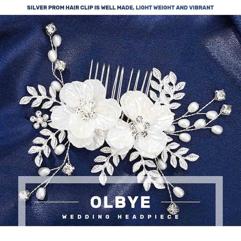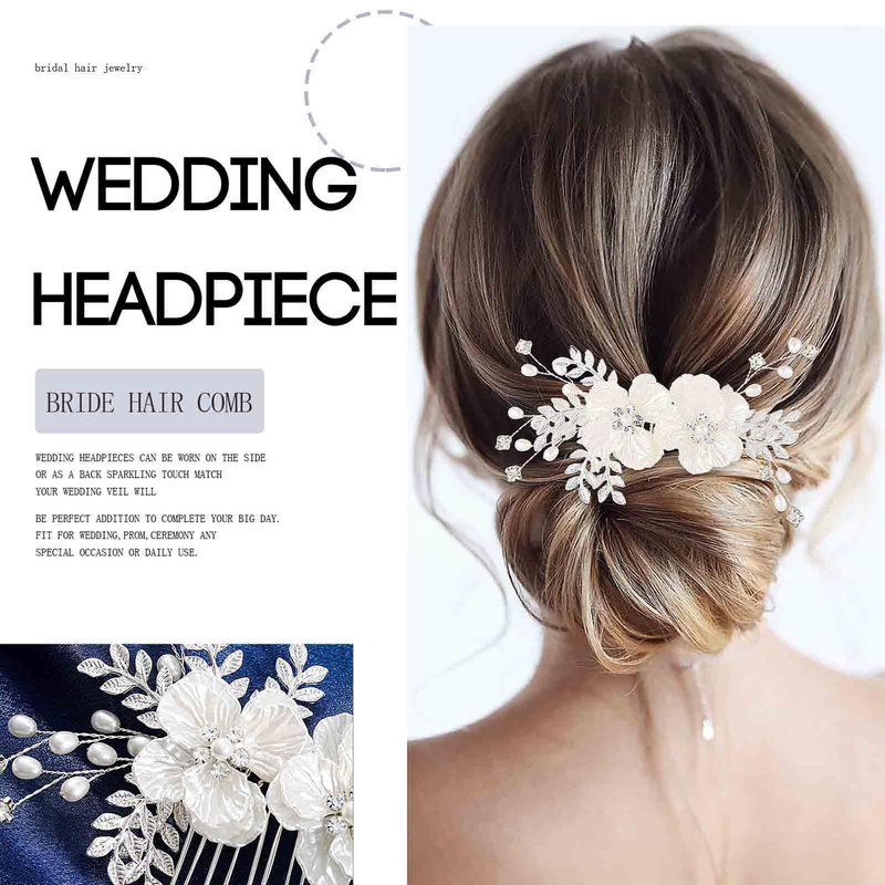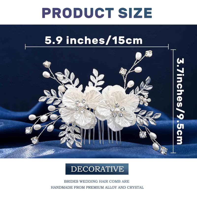 - Brides wedding hair accessories are handmade from high quality alloy and rhinestones, leaves, pearls are attached to the silver wire to make the shape of the decorative hair combs look more unique and elegant.