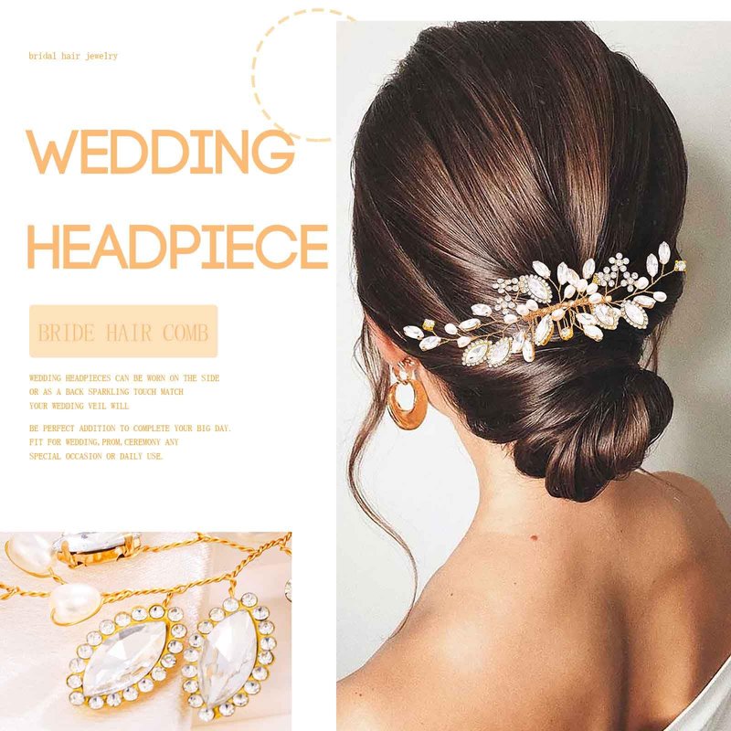 Olbye Women’s Rhinestone Hair Comb Bridal Headpiece Crystal Prom Hair Pieces Flower Bridesmaids Decorative Hair Clips Bride Pearls Hair Side Combs Wedding Hair Accessories for Brides (Gold)
