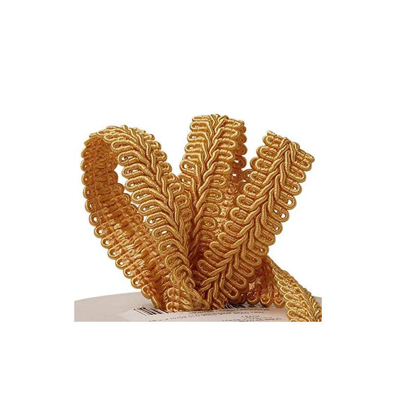 Old Gold Gimp Braid Trim 5/8" X 10 Yards - Old Gold Gimp Braid Trim, 5/8" X 10yd, features a lovely scroll-like pattern. Made from quality fabric, this gimp trim is great for sewing and embroidery like adding trim to dresses, coats, etc.