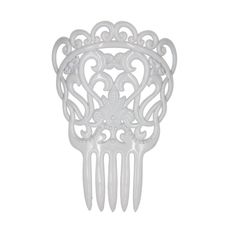 Ole Ole Flamenco Hair Comb for Dancers with Ornamental Design Spanish Hair Pins for Dancers Model II (White)