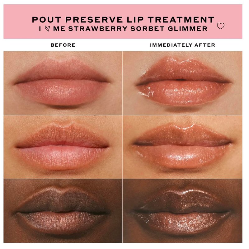 - This lip treatment visibly counteracts volume loss and restores bounce. The active formula is clinically tested to give you softer, bouncier, fuller-looking lips in just one week, with a mood-boosting pink glimmering finish and sweet strawberry scent.