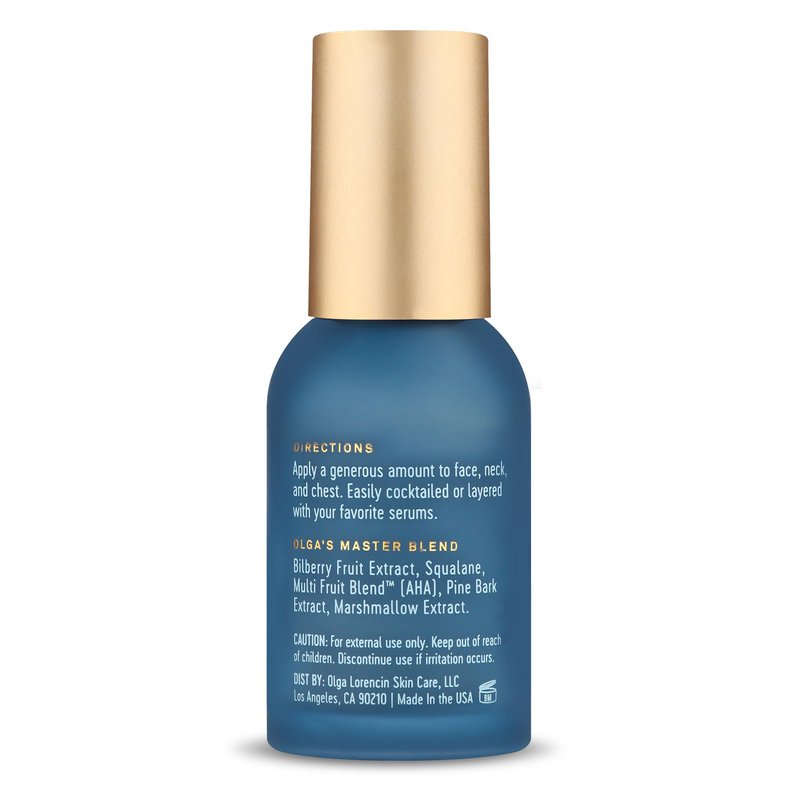 - Olga's Master Blend: This night time facial moisturizer boasts an exfoliating Multi Fruit Acid Blend to slough dead skin. A blend of citrus, sugar cane, and sugar maple leaves you with luminous skin