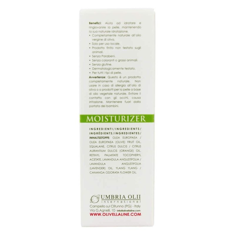 Olivella Moisturizer Oil uses squalane derived from olives. This all-natural product is ideal for your entire facial and skincare routine. Just a dab a day to your face, lips, elbows, knee, heels, and even your nailbeds can do wonders. Included into every bottle is a blend of essential oils as well as delicate floral scents, which combine beautifully to nourish your skin. The mixture of natural "un-saponifiable" (phytosterols) acts as a derma-regenerator and prevents damages from external agents.
