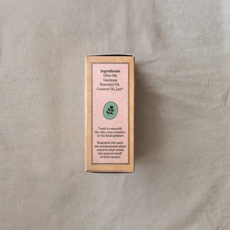 - All natural soap bars with only 4 ingredients (and all can be pronounced!): Olive Oil, Gardenia Oil, Coconut Oil, and Lye (Used to saponify oils, none remain in the final product), making a perfect all natural and vegan soap.