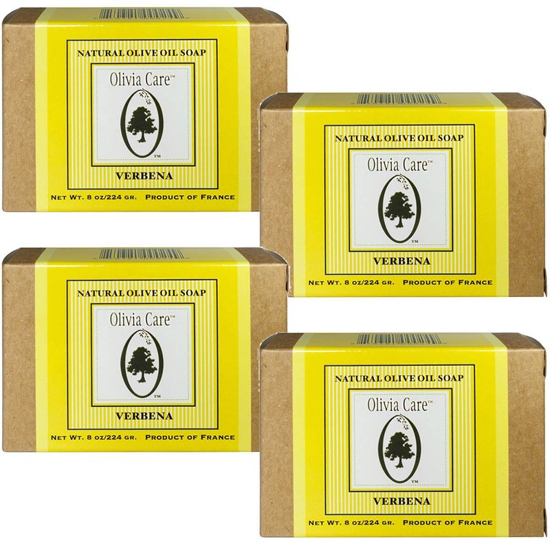 Olivia Care Premium Verbena Bath & Body Bar Soap | Organic, Vegan & Natural | Olive Oil | Repairs, Hydrates, Moisturizes & Deep Cleans | Good For Sensitive Dry Skin | Made in USA | 8 OZ - (4 PACK)