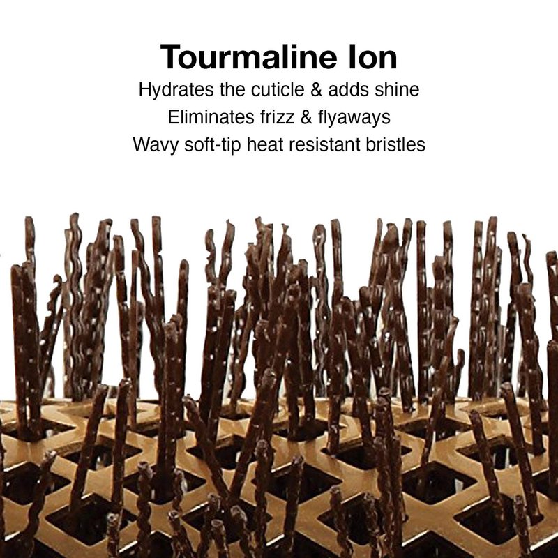 Olivia Garden is the leader in producing professional salon brushes. Each brush is carefully crafted the deliver the best results for any styling need. This is a professional brush that every station needs or you can take with you wherever you go. Features: Unique Bristle Design: Special wavy heat resistant bristles, Soft-tip - gentle on hair Great for volume, waves or curls. Unlimited styling flexibility. New Turbo Barrel: Extra large vents. Greater airflow. Reduces drying time Tourmaline Ion Technology: Hydrates the cuticle. Adds more shine to the hair. Eliminates frizz and flyaways. Hair is healthier and easier to style Latest Ceramic Technology: Heats up faster and retains heat longer Superior and long-lasting hairstyles Unique Handle Design: Easy-grip ergonomic handle. Lightweight for effortless styling Retractable sectioning pick