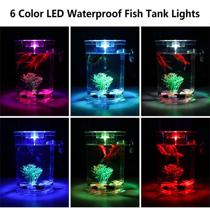 - đŠ ăDazzling Colorsă Automatic switching LED lighting with 7 dazzling color selections to brightly illuminate your fish. Uses 2pcs CR2032 button cells.