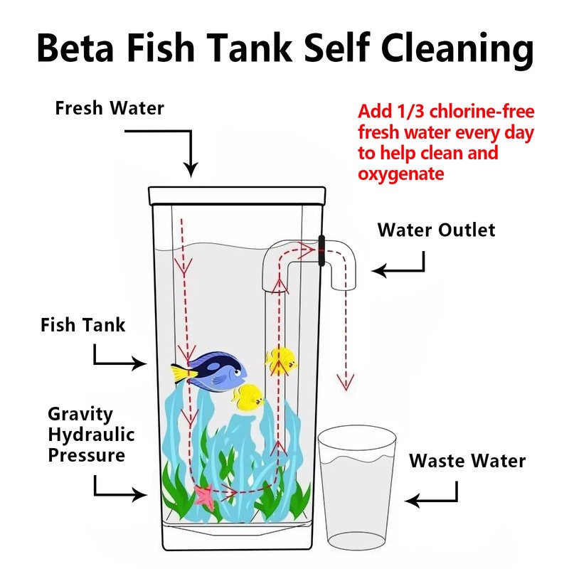 - đ ăBeta Fish Tank Self Cleaningă Ideal for starters and saving your time, add freshwater with similar temperatures every day to achieve cleaning and oxygenation. Easy to set up, and easy to maintain.