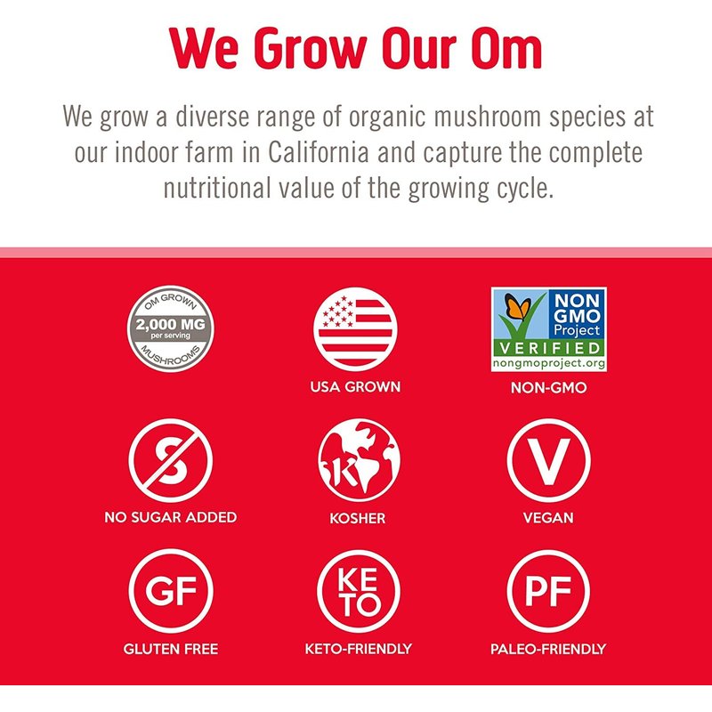 - OM Grown Mushroom Blend 2,000 mg Per Serving