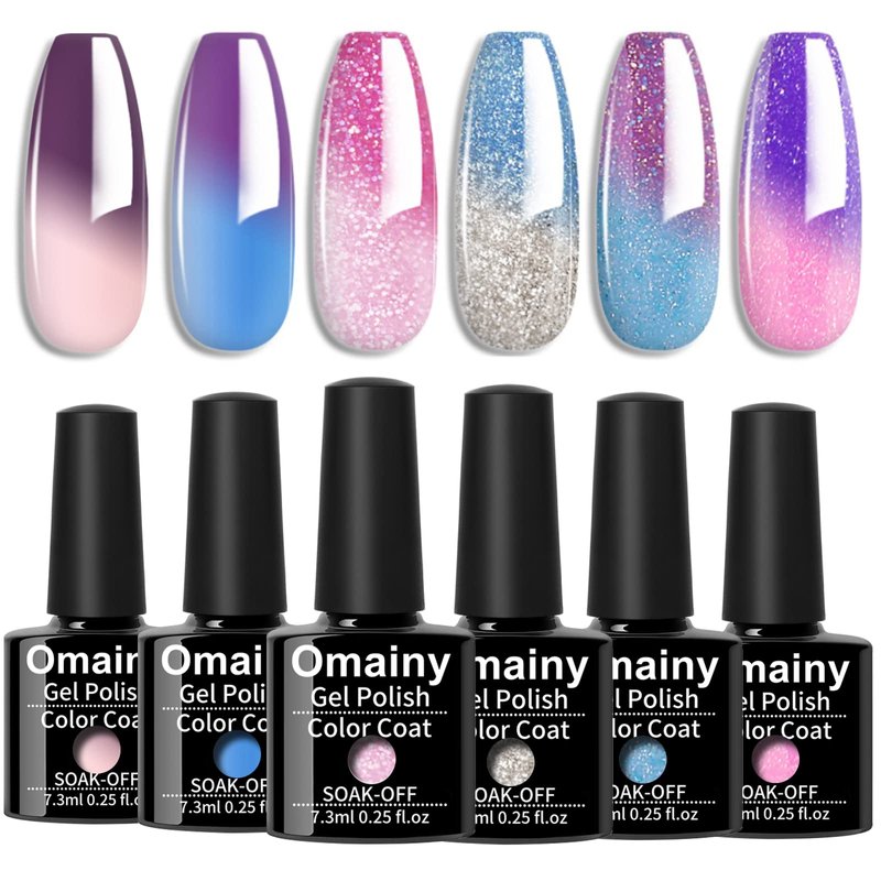- 【OMAINY COLOR CHANGING GEL POLISH SET】Item Include 6 temperature color changing nail polish color collection of Sapphire Blue Purple Pink Red Laverder Red Color Changing Gel Polish.