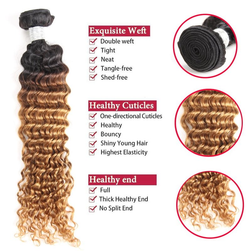 - Hair Material: Brazilian Ombre Deep Wave Human Hair Bundles, 100% Human Hair.
