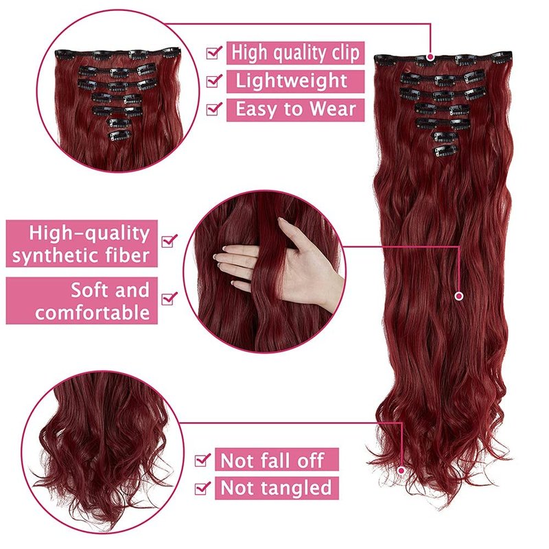 - Product Information - 7PCS/set, 16clips, 160g. The natural length is 23/24 inches (8 inches, one 4-card hair clip, 6 inches, two 3-card hair clips, 4 inches, two 2-card hair clips, 2 inches, two 1-card hair clips), and different styles will bring you a variety of effect.