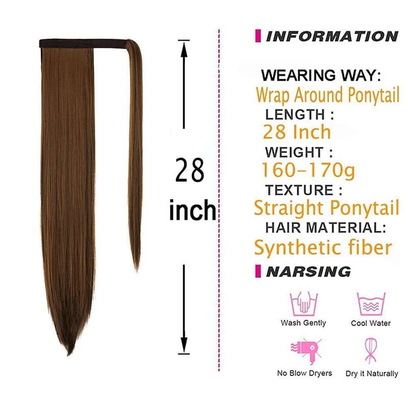 - Straight Ponytail Extension - Length: 20/28 inch. Weight: 140/160g. Add the length, volume and fullness to a ponytail or a bun just in seconds. Smooth and less tangled, not heavy. It looks like your real hair. No one knows your little secret!