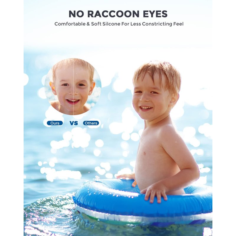 - 【Comfortable Kids Swim Goggles】 Premuim & Adjustable non-slip silicone strap and flexible nose bridge allow the kids swim goggle to fit any face shape, super-soft silicone gaskets distribute the pressure evenly around the kid's eyes and provide an extreme comfort that never hurt the nose or leave a mark on the face.