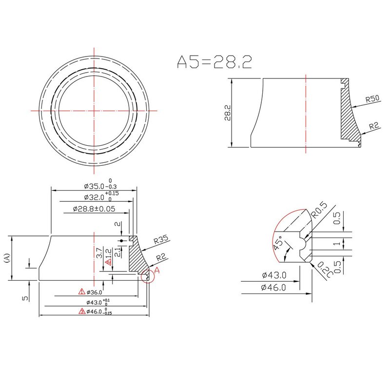 - Inside Diameter: 1 1/8" (28.8mm) Top Outside Diameter: 35.0mm Bottom Outside Diameter: 46.0mm