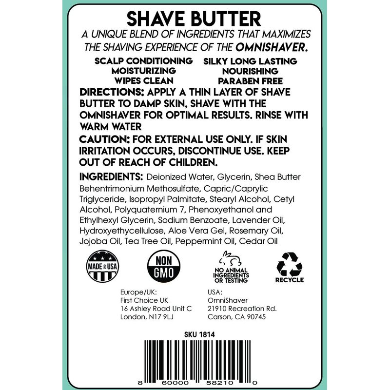 OmniShaver Shave Butter - The Best Shaving Cream for Head Arms Legs and Body - Shaving Conditioner Cream