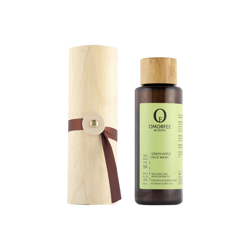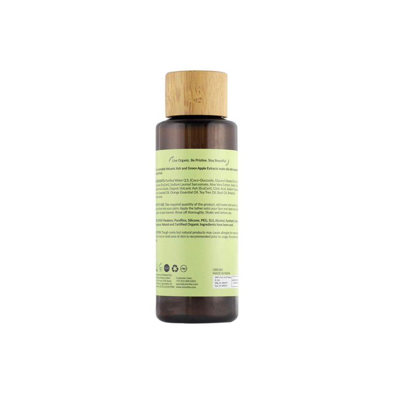 OMORFEE Organic Green Apple Face Wash | Organic Face Wash For Oily Skin | Apple Extract, Volcanic Ash, Basil Oil | 100 ml / 3.38 Fl. Oz.