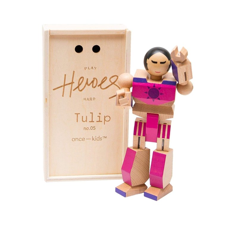 ONCE KIDS Playhard Hero Action Figures – Tulip Wood Baby Toys for Imaginative Play – Sturdy & Durably Packaged Hero Toy for Kids