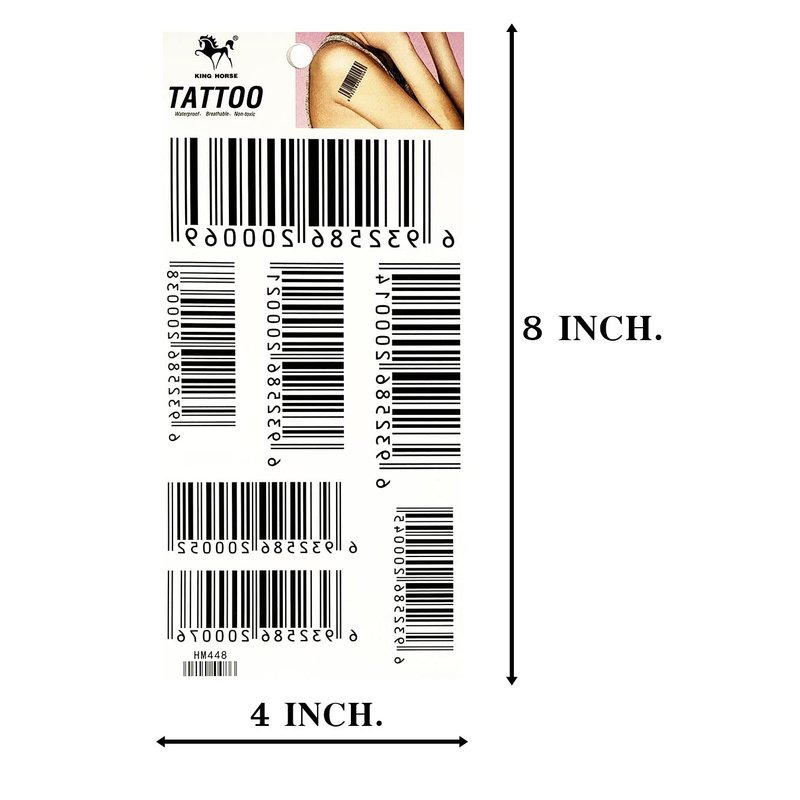 ONCEX 1 Sheet Barcodes Numbers Temporary Tattoos Waterproof Black Bar code Tattoo Designs Body Arms Legs Shoulder Back Men Women Painting Cartoon Art Stickers Water Transfer, 8X4 Inch