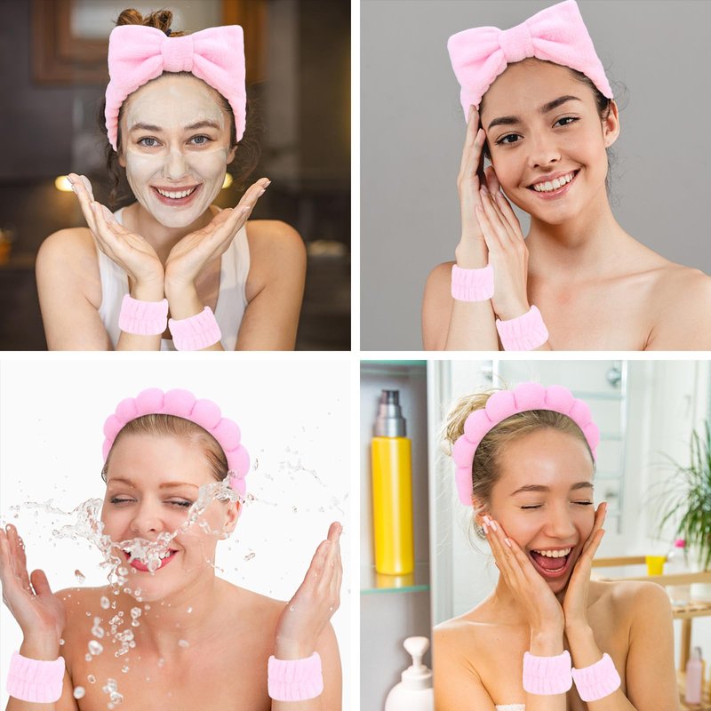 - Durable: The spa set include 1 x pink sponge headband, 1 x pink terry cloth headband, 2 pairs of pink wristbands and 4 black poder puffs. You can share these headband with your family and friends.