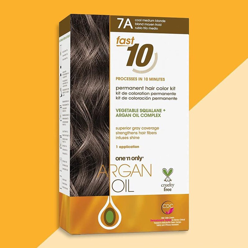 One 'n Only Argan Oil Fast 10 Permanent Hair Color Kit 7A Cool Medium Blonde, Gray Hair Coverage in 10 Minutes, Helps Maintain Natural Moisture Balance, Advanced Micro-Pigments for Natural Tones