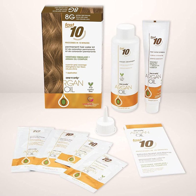 One 'n Only Argan Oil Fast 10 Permanent Hair Color Kit 8G Golden Light Blonde, Gray Hair Coverage in 10 Minutes, Helps Maintain Natural Moisture Balance, Advanced Micro-Pigments for Natural Tones