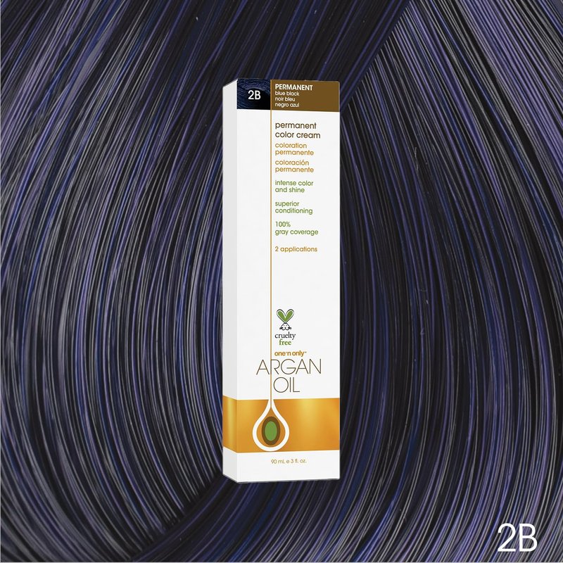 One N' Only Permanent Hair Color - Permanent Hair Dye Made with Argan Oil - Delivers Rich, Accurate Tones with Gray Coverage - Improves Moisture & Elasticity - 2B Blue Black (3 oz)