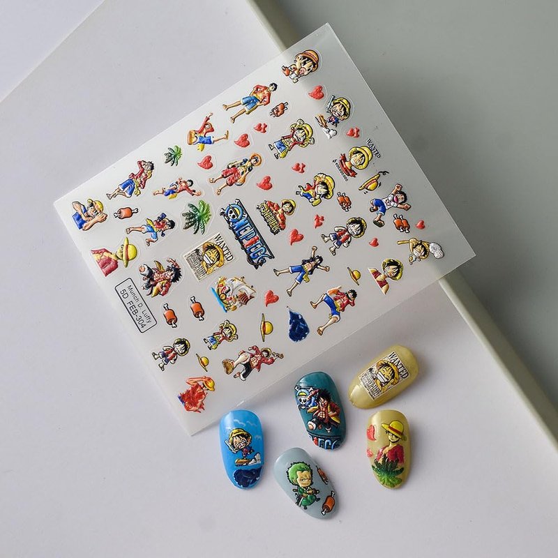 ONE Piece Nail SSTICKER 3D Anime Nail Sticker ONE Piece Nail DECALEmbossed Nail Art Stickers Decals Self Adhesive Nail Sticker Kawaii Design Anime Nail Stickers for Women, Girls, Kids, Gift (Monkey)