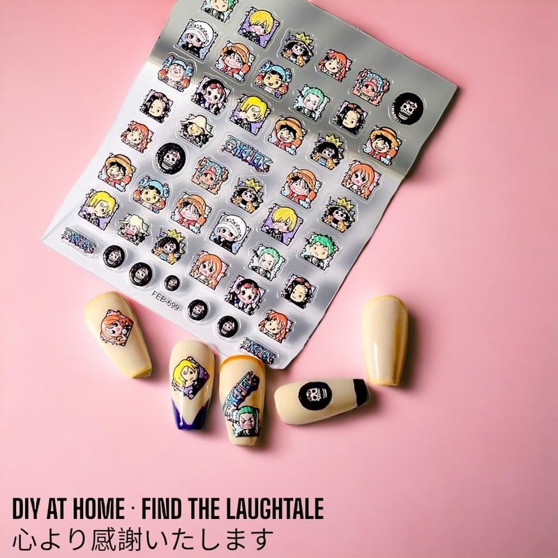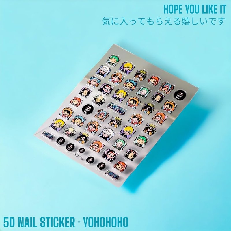ONE Piece Nail SSTICKER 3D Anime Nail Sticker ONE Piece Nail DECALEmbossed Nail Art Stickers Decals Self Adhesive Nail Sticker Kawaii Design Anime Nail Stickers for Women, Girls, Kids, Gift (THECREW)
