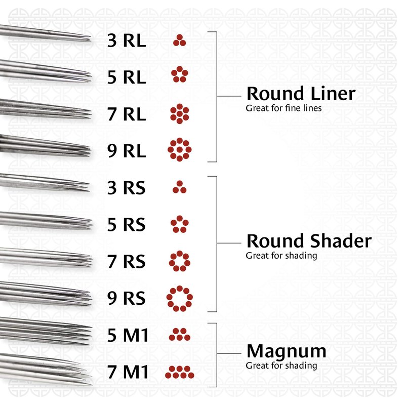 - PRECISION NEEDLES: These high-quality, 7RL needles provide perfect precision every time with your tattoo rotary machine. Whether you plan to tattoo yourself or a friend, precision and attention to detail are both essential. These sharp needles are the perfect size to use as a liner and for filling in your tattoos. Be sure to use our premium, tattoo-specific ink along with these needles.