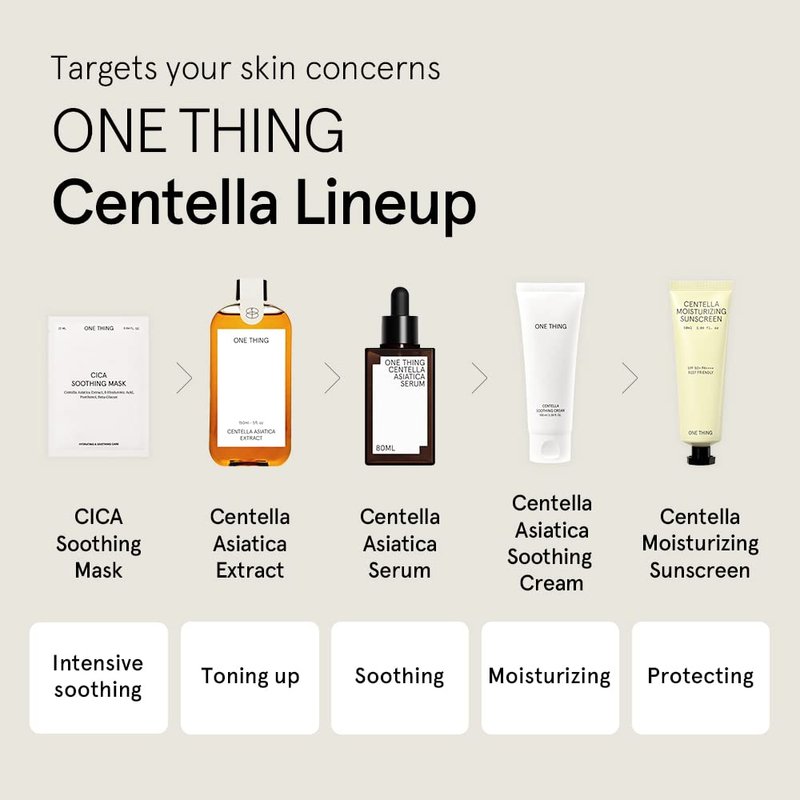 - Skincare routine : Discover the ONE THING CICA lineup for sensitive skin, including Centella Asiatica Extract for toning, Serum, and Soothing Cream for hydration, and Centella Sunscreen for SPF protection