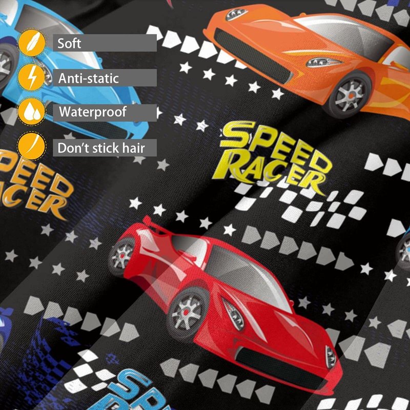 - Premium Quality : Adapt with Waterproof Fabric,Our Speed Car Cool Speed Racer Colorful Hairdresser Cutting Cape Adapt Is Anti-Wrinkle and Anti-Static.When Cutting Hair, the Hair Will Not Stick to the Cape and Just Take a Light Shot to Fall Naturally.