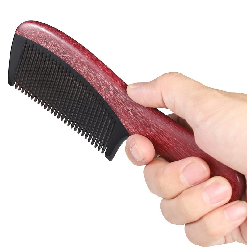 - The comb handle and back face is made from 100% High Quality red wood with Natural Pattern Variations by Artisan Craftsman. The Fine tooth is made from Buffalo Horn.