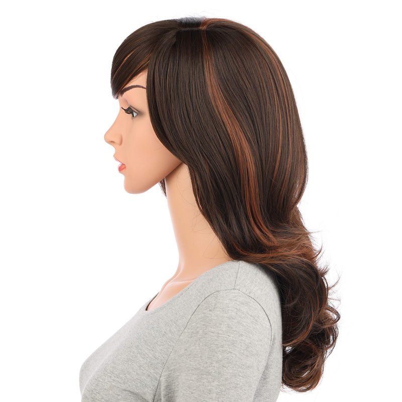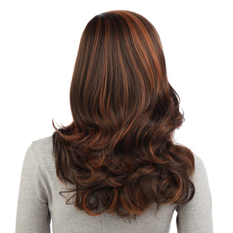 Onedor Full Head Beautiful Long Curly Wave Stunning Wig Charming Curly Costume Wigs with Fringe (Brown Highlights-8HT1439)