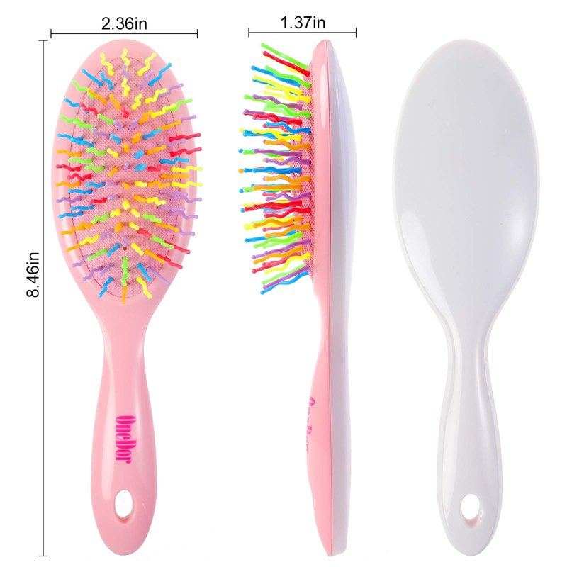 OneDor Rainbow S-Curve Ball tipped Air Volume Paddle Hair Brush with Flexible Cushion Base for Hair | Detangling Comb (2 Set - Pink)