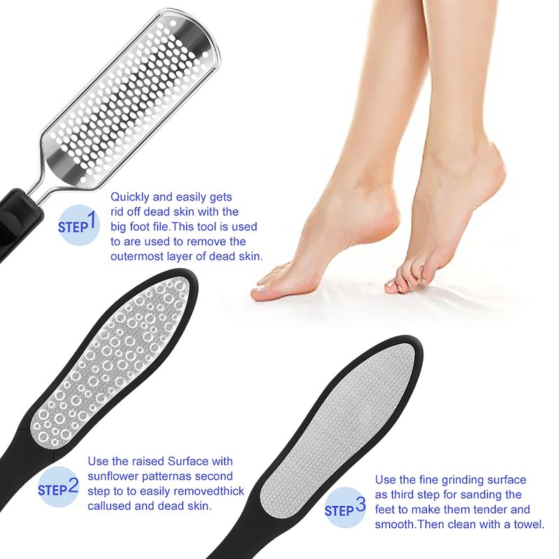 - 2、Foot rasp easily let you reach curves & hard to reach spots. Then your dual sided foot file smooths away the hard skin.
