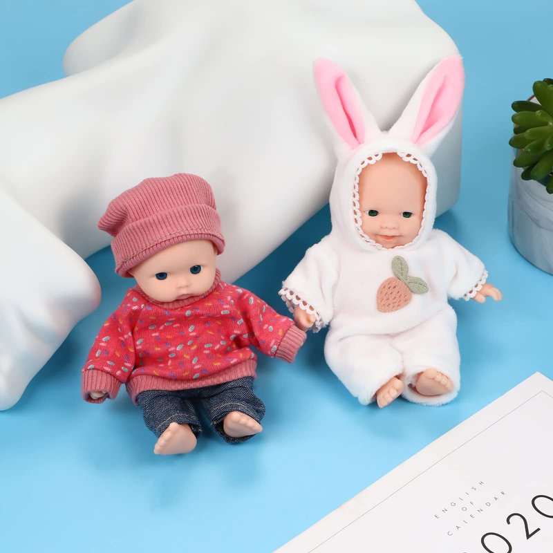 ONEST 2 Sets 5 Inch Dolls Cute Baby Dolls Include 2 Pieces Baby Mini Dolls, 2 Sets Handmade Doll Clothes