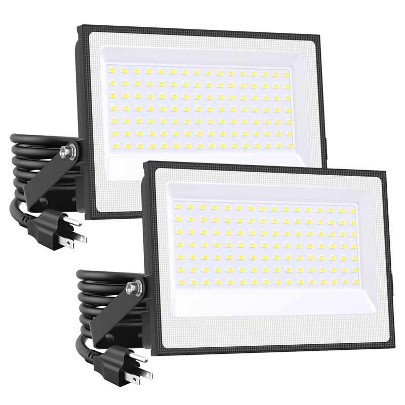 Onforu 100W Flood Lights Outdoor, 8900lm Bright LED Work Light with Plug, 6500K Daylight White LED Flood Light Outdoor, IP66 Waterproof Security Lights Yard Lights for Yard Garage Stadium 2 Pack