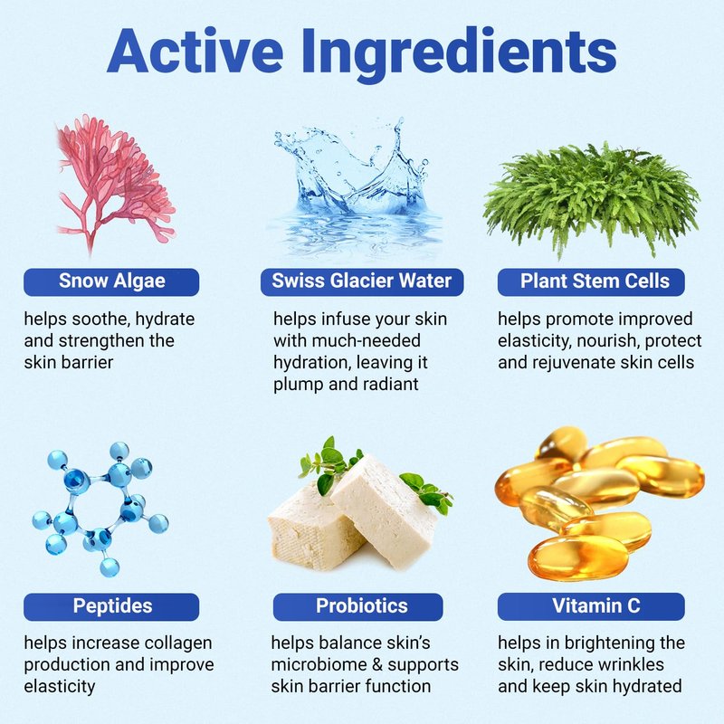 - POWERED BY NATURE AND SCIENCE: Infused with powerful ingredients like plant stem cells for face to improved elasticity, snow algae for skin structure enhancement, and Swiss glacier water for 24-hour hydration serum for face, our anti aging face serum is designed to firm, plump, and tighten while being cruelty-free and free from parabens and artificial fragrances. This Face wrinkle cream for women and men will not clog your pores and it will not make your skin feel oily or greasy.